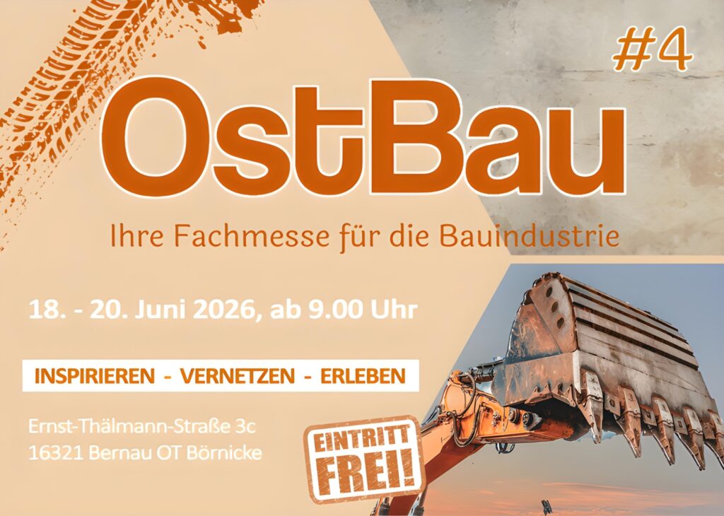 Es ist bald wieder soweit: Die OstBau #4 steht vor der Tür – und natürlich sind auch wir 2026 wieder mit dabei! Vom 18. bis 20. Juni 2026 findet die Messe statt, und wir freuen uns riesig darauf, euch dort zu treffen, spannende Gespräche zu führen und euch unsere neuesten Projekte, Ideen und Lösungen rund ums Bauen und Gestalten zu zeigen.
